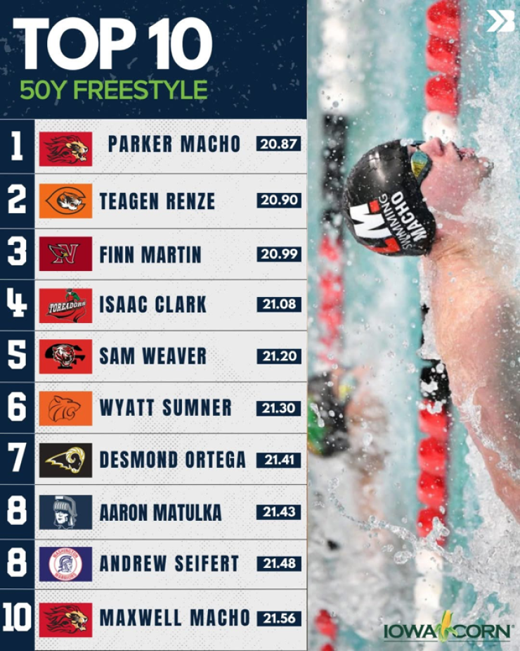 Aaron Matulka Ranks Top 10 in the State in the 50-Yard Freestyle